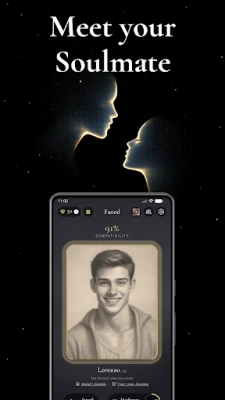 Enter your birth details and unlock a deeply personal experience. Fated generates a unique soulmate profile just for you—complete with their portrait, name, personality traits, and the cosmic forces that bind you together. This isn't random matching; it's destiny revealed through the stars.