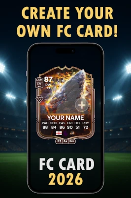Game Features: *Easy to Use Card Creator *HD FC Card Images *Different Card types & 256 Nations *The FC Packs are completely customizable *Add your photo! *Save card in your own Gallery