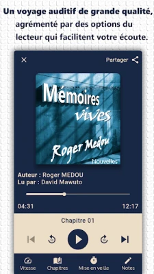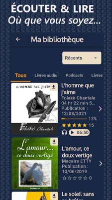 Créez votre bibliothèque, ajoutez des livres dans vos favoris, notez et commentez les livres que vous avez écoutés.