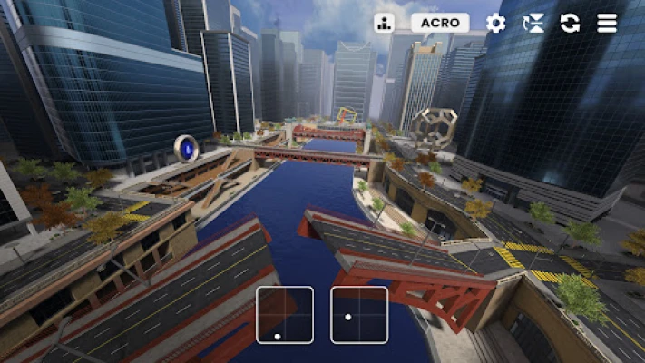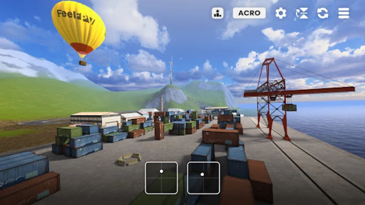 FeelFPV is first and foremost a simulator and flying an FPV drone is not as easy as it may seem at first. If you have no experience with FPV drones, it will take you a while to get the hang of the sensitive controls. The simulator includes touch controls but controlling the drone is challenging and not recommended. For the best experience, use an RC controller but even using a game controller can be satisfying to fly.