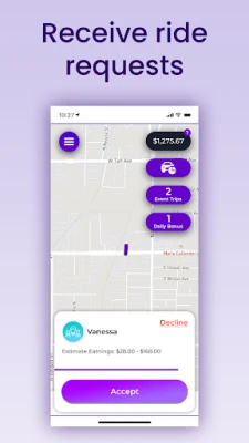 ● Accept and complete rides with one tap