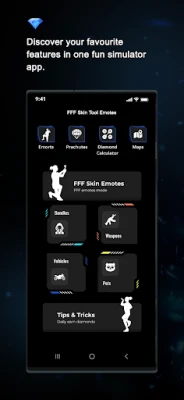 Disclaimer: This application is not cheat or hack Skin Tool, Emote, etc. All images/app layouts are copyright of their respective owners. All images in the app are available on public domains. This image is not endorsed by any of the respective owners, and the images are used only for information and entertainment purpose. We don’t collect any user Personal Information in App. We don't Associated with any Company and Brand Etc. And if you have any query and issue with this app then please contact us! FFF Skin Tool Emotes prank app. It is developed just for entertainment and to make a fun.