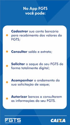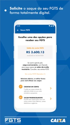 Todos os saques previstos em lei estão disponíveis no aplicativo e, caso necessite ou tenha direito, você pode solicitar no próprio App.