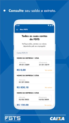 - Consulta ao saldo e extrato das contas FGTS;