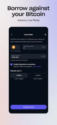 Need liquidity? Borrow against your Bitcoin or Eth at the lowest fixed rate in the industry at 50% LTV (9.999% APR) on 12-month fixed-term loans. There is no pre-payment penalty, and you enjoy self-custody via MPC: your assets stay visible on-chain 24/7 without rehypothecation.