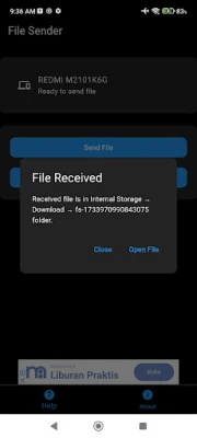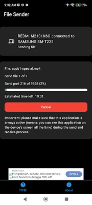 File Sender allow you to send files between devices without using internet connection or Bluetooth.
