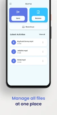File Share App | File Transfer | File Sender app satisfies all your file transfer needs perfectly. Just select videos, photos, music, apps & e-book, pdf files or any other files, it will transfer them to your friends at a lightning speed without the network.