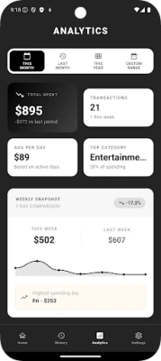 • Visual spending analytics and trends