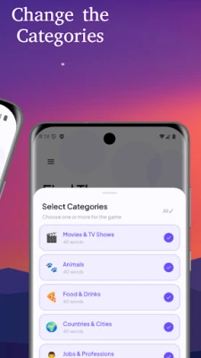 - 16 word categories — Animals, Movies, Food, Sports, Brands, Countries and more
