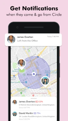 ✓ Receive notifications when your Family members arrive or leave a created place, member’s phone battery gets low and etc. 🔔