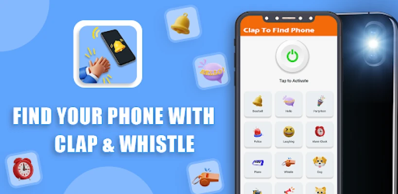 Find My Phone Pro By Clap & Whistle helps you to find your lost phone in office, home or anywhere by just clapping hands or whistling. Don't worry or feel depressed Find My Phone - Clap, Whistle app is the best solution for your problem, now you can locate your device instantly by just a clap or whistle and your device will start ringing aloud along with flashing and vibration.