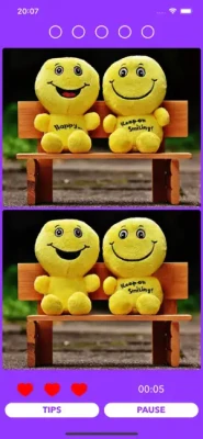 Features • 300 open levels • Find 5 differences. • Retry failed stage again as you want. • Unlimited hints available. • Beautiful graphics and animations. • Develops attention and memory • Relaxing background music and sound effects.