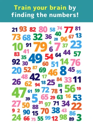 Spot the given numbers hidden in a mix of colorful digits in this fun and easy brain-training game!