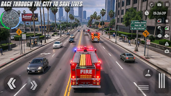 Firefighter truck driving game 2025, which explores the whole open world environment city. Rescue firefighter driving simulator game is totally designed for mission-based. Fire rescue truck simulator 3d is learn to drive the firefighter truck for different emergency vehicles to save the city in to rescue operation. The US firefighter rescue game 3d amazing truck is also presented, such as fire pumper trucks, water tankers, elevator trucks for real firefighting games, and the fireman wala game.