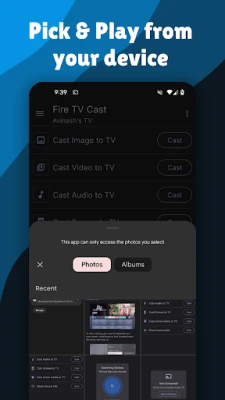 This app allows you to cast your images, audios and videos to the connected Fire TV device. This app pairs with the tv and casts media files selected by the user to it.