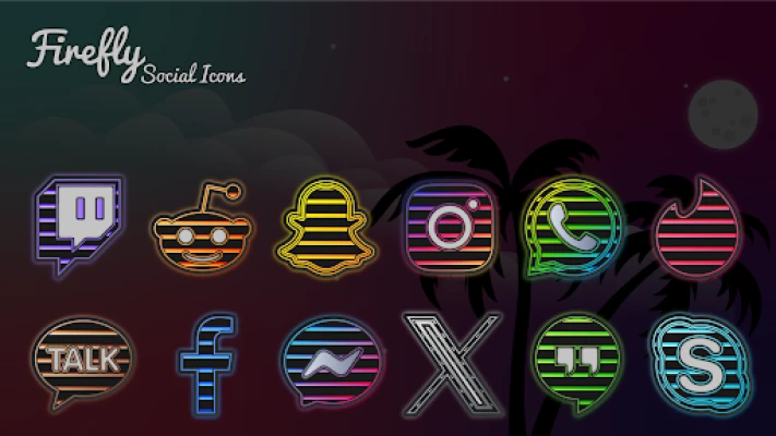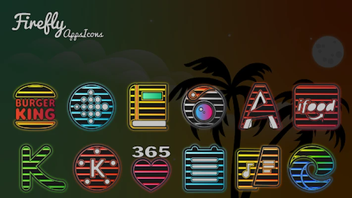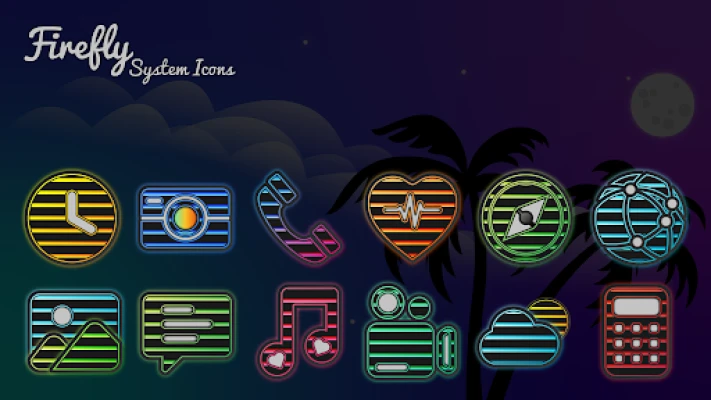 This isn't just an icon pack; it's a portal to a retro-futuristic realm. Immerse yourself in a world of vibrant hues, sleek lines, and nostalgic charm. Firefly Dark Neon is a harmonious blend of modern minimalism and classic Outrun aesthetics.