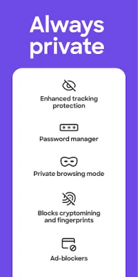 • Private browsing mode — When you close private mode, your browsing history is automatically erased from your device.