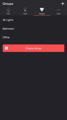 Select one or more lights for your fire light show on the Lights/Groups tab. Choose a group that you set up using your LIFX app, or create a new group in the Firestorm for LIFX app. To edit an in-app group in the list, swipe the item to the left and tap the pencil icon. When you add, remove, or change lights, pull down the list to refresh.