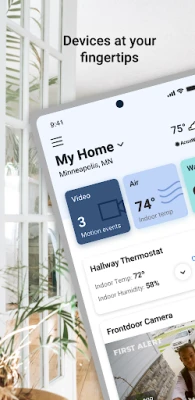 The First Alert by Resideo App connects what matters most and puts you in control, whether you are home or away. Providing a whole home solution to smart home security and monitoring, the First Alert by Resideo App, powered by our family of brands, offers home security management, safety, comfort, and water leak detection. Plus, it is compatible across Resideo, specific Honeywell Home and First Alert branded products, all conveniently in one innovative app.