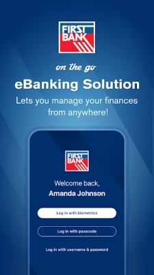 Bank anytime, anywhere with First Bank's on the go eBanking solution, a mobile banking service designed for all First Bank eBanking customers. With First Bank's on the go eBanking solution, you can conveniently check balances, make quick transfers, pay bills, deposit money, send person-to-person payments, manage cards, and locate bank branches. Enjoy the flexibility and convenience of managing your finances on the go!