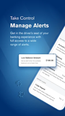 Manage Alerts: Take control of your banking experience with complete access to a wide range of alerts, including those for debit card usage and low balance thresholds.