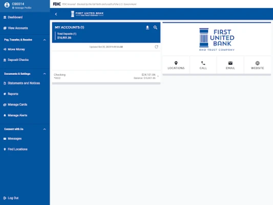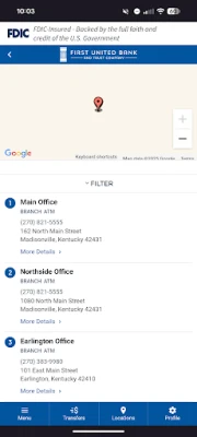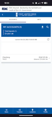 Features: Check balances Review account history Transfer money from one First United Bank account to another Pay bills Find branches and ATM’s