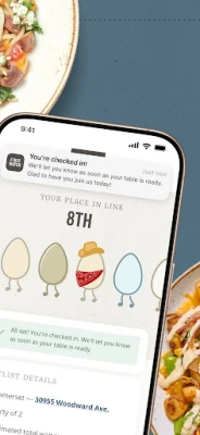 Share your location with us when you join the waitlist, and we'll track your location to automatically check you in when you arrive. Automatic checkin ensures that our staff are notified when you are at the restaurant, and eliminates the need to see the host. When you arrive we'll seat you as soon as possible!