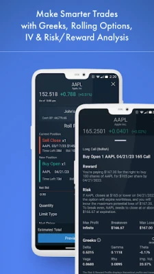 View key metrics with the options analytics tool: Greeks, IV, Max Profit/Loss & Breakeven.