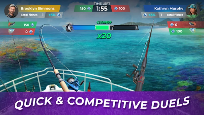 Fight with occasional rivals in action fishing duels to become a real fishing champion!