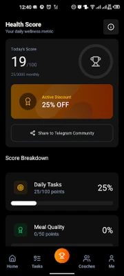 Your Health Score keeps you focused by measuring your daily commitment and rewarding consistency with points, perks, and subscription discounts. Join fun challenges, build discipline, and watch your confidence grow as your body transforms in a healthy, sustainable way.