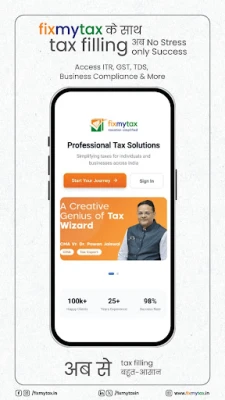 fixmytax is a fully digital tax compliance app designed to make Income Tax, GST, and financial planning hassle-free for individuals, freelancers, startups, and MSMEs across India. Over burdened Tax Professionals may enjoy our services through delegation.