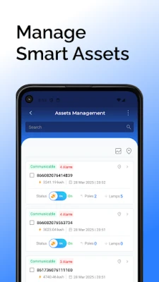 • Live map-based view of streetlight status (ON/OFF/Dimmed/Faulty)