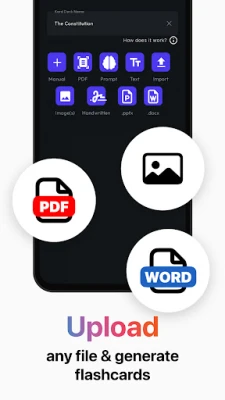 • Instant Flashcards Creation: Create flashcards from PDFs, text, and custom prompts instantly, allowing more time for actual learning.