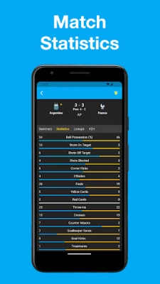 - Schedules/fixtures overviews per country/league. - Live tables during soccer matches. - Live football statistics (ball possession, shots on goal, etc) - Player information. - Team information. - Substitutions. - Dark mode.