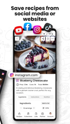- Import from Social Media: Save recipes directly from Instagram, Facebook, TikTok, and YouTube in a clean, easy-to-read format.