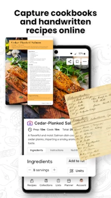 Save recipes from Instagram, Facebook, TikTok, YouTube, websites, cookbooks, handwritten notes, and more, all in one app! Turn them into meal plans and grocery lists in seconds.