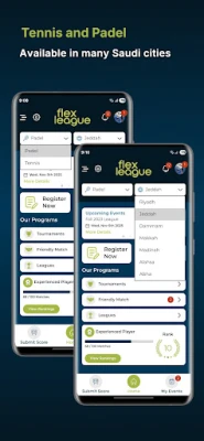 tournaments tailored to your skill level, and non-competitive players at your fingertips. Flexible scheduling allows you to play a match anytime, anywhere. Scores are continuously monitored to ensure accurate player skill ratings. Available in Jeddah, Riyadh, and Dammam/Khobar.