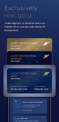 Whatever your financial plans may be, our sophisticated and highly secure flexgold app offers you a range of opportunities to expand your portfolio, make provisions for the future and achieve greater financial freedom. What makes flexgold virtually unique is that the precious metals you buy are physically available, stored securely in Switzerland for you, and belong to you at all times!