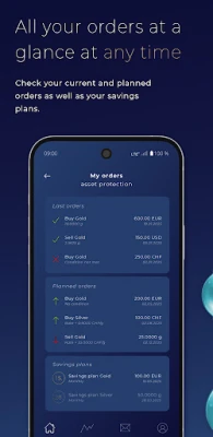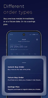 You have your own ‘vault’ for the digital storage of whichever metal you’ve purchased. You can easily access your ‘vault’ via the app, where you can not only view your current precious metal holdings, but also see how much of each currency is available for further investment. With the help of selected data charts, you can track the development and movements of the gold price and other important prices in the precious metals markets in real time. This allows you to constantly maintain an overview of your investments at all times, and confidently make informed decisions.