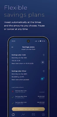 Choose from four currencies and four precious metals for your investments: for example, buy any of the four precious metals gold, silver, platinum and palladium with either euros, or British pounds, Swiss francs or US dollars. You decide when and how: as an immediate purchase, a planned purchase or for a savings plan.