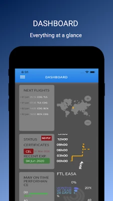 - Manage your flight limitations (next 30days preview), recent experience, certificates, Flight Time Limitation and Flight Duty Period Limitations with acclimatization (EASA and FAA), also with EU-OPS mixed fleet type rating (A330/A350 and B777/B787).