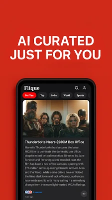 Flique is an AI-powered, interactive news app that makes staying updated fun, fast, and relevant. Our AI agents fetch and cross-verify stories from multiple trusted sources, so you always get credible news. Stories are presented in short, swipeable cards—just swipe right if you like a story or left if you don’t. The more you swipe, the more Flique personalizes your feed.