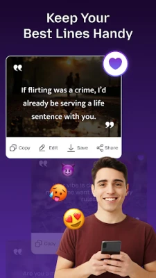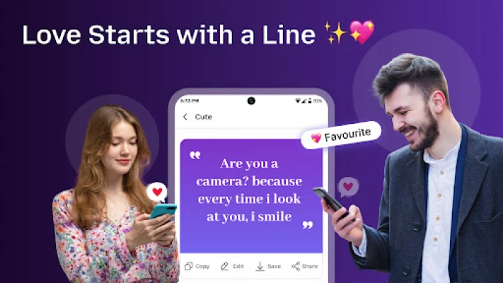 Found a line you think your friends would love? You can easily share your favorite lines via text, social media. Share the fun with others and help spread the joy of flirting!