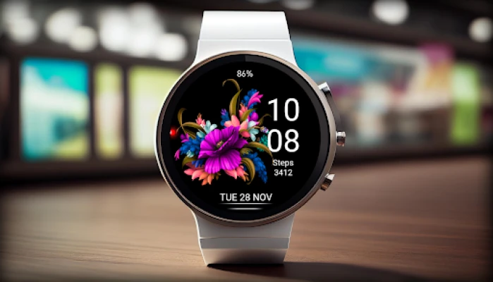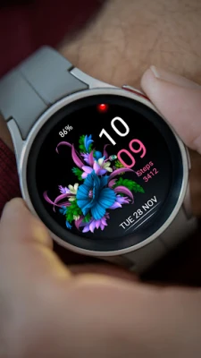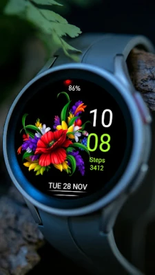 A stylish and vibrant watch face featuring stunning floral compositions, designed for those who love to stand out. Rich colors, a deep black background, and smooth accents make this watch face a true украшение for your smartwatch.