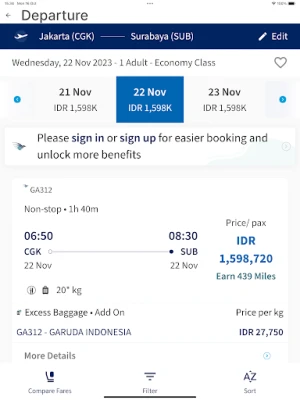 We’ll always innovate to give the best for you. Here’s the key features you can enjoy now: • Book your one-way and roundtrip tickets in just a few taps. • Check-in for upcoming flights up to 24-hours in advance. • Manage your trips and complete your trip with special offers. • Use your boarding pass to get extra benefits and offers. • Check flight status and schedule for all Garuda Indonesia flights. • Discover new travel destination with the best fares. • Get exclusive offer only for mobile app user. • Manage your Garuda Miles account easily.