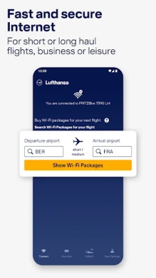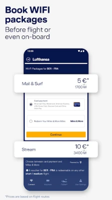 Board, take off and start surfing without delay: from now on you can choose and purchase the Internet access that suits your requirements for your upcoming flight via the app while you are still on the ground. The access is valid for the calendar year of the purchase and the three subsequent calendar years and can only be used once.