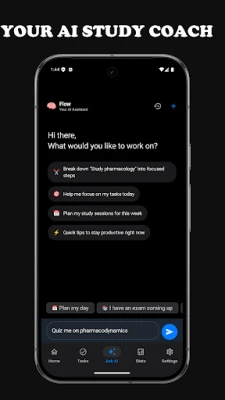 Meet Flow, the AI assistant built inside your focus timer. Feeling overwhelmed by a big task? Flow breaks it down into clear, focused steps so you always know what to do next. Ask Flow to plan your study sessions for the week, get quick tips to stay productive right now, or create a full daily plan before your first Pomodoro begins.
