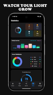 Track daily focus minutes, weekly overview, peak productivity hours, subject distribution, longest session, total lifetime focus, and daily streaks โ proof you are walking toward the light one Pomodoro at a time.