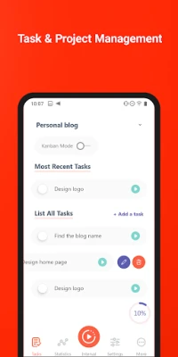 * Statistics by tasks, by project, and by interval: Monitor your progress and productivity over time.