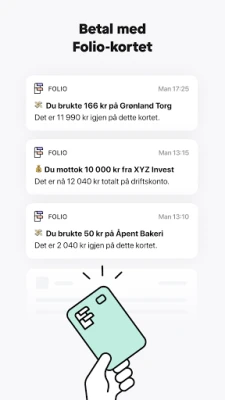 Hver gang du betaler med Folio-kortet, får du et push-varsel som ber deg om å ta et bilde av kvitteringen og bekrefte kjøpet i appen. Gjør du dette med en gang du har betalt, slipper du å tenke mer på det!